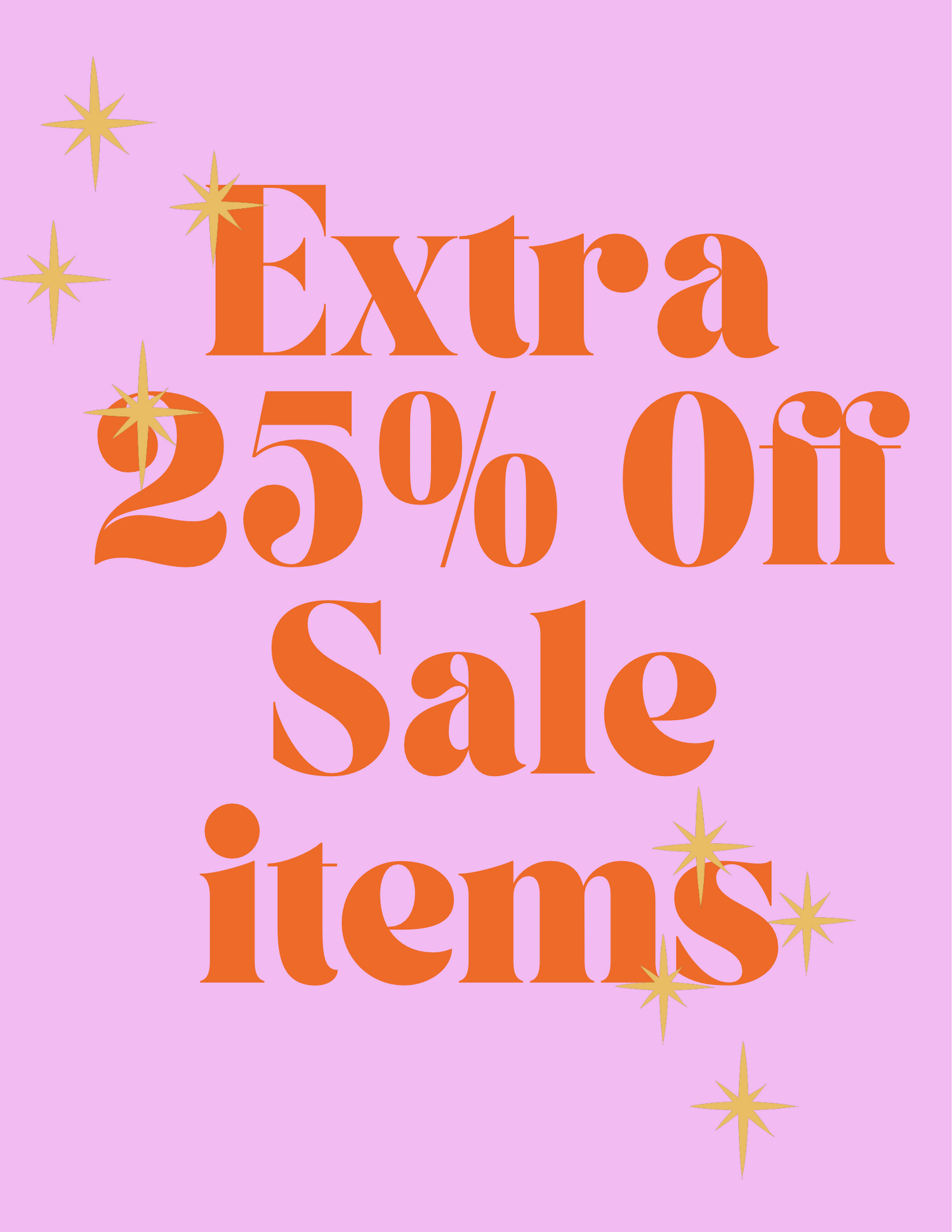 There is only one left in each of these styles which means you get 25% off! Whether it is new to store or already marked down you will get 25% off the lowest price. Discounts taken at checkout. No codes needed.