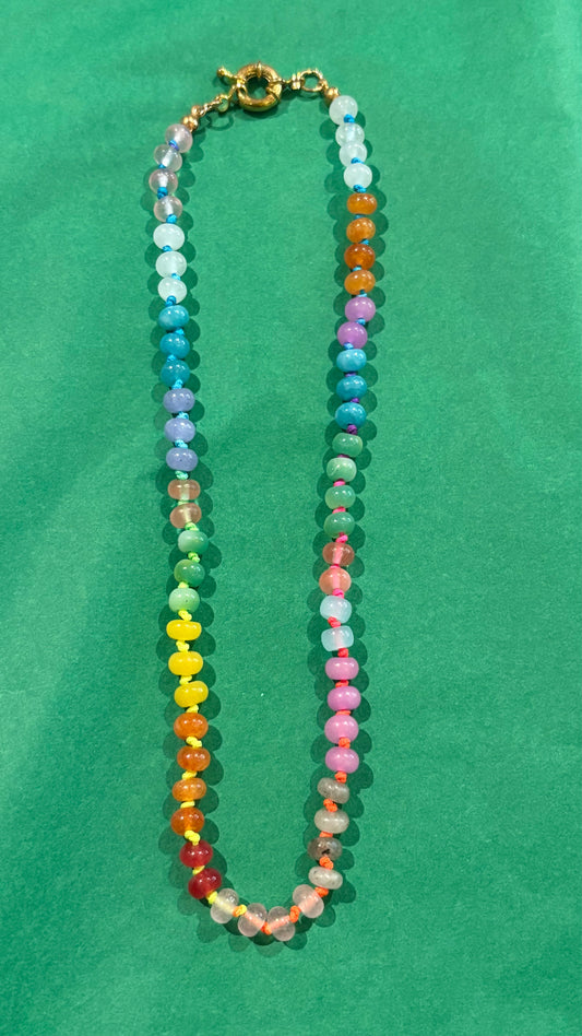 Gemstone Candy Bead Rainbow and Charm Collector Necklace