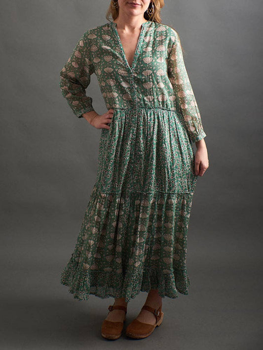 Britta Long Sleeve Tiered Dress Aegean Teal Mix
