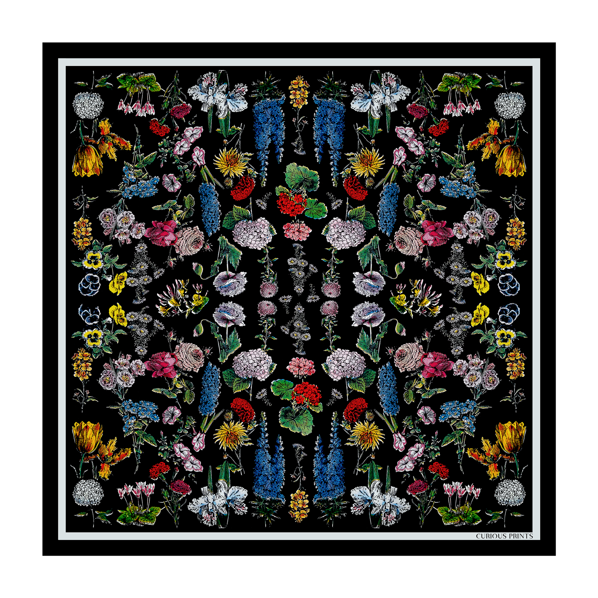 Our silk scarves are designed using vintage botanical illustrations. The custom pattern is printed on 100% silk habotai fabric and finished into a lovely small square scarf by hand. These scarves are light and airy and the special print process allows the print to be seen through both sides of the scarf. The print is permanent and will never fade with use or washing. The scarves are 17"x17" in size, perfect for tying around the neck, ponytail, accessorizing a bag, or using as a facemask! Imported.