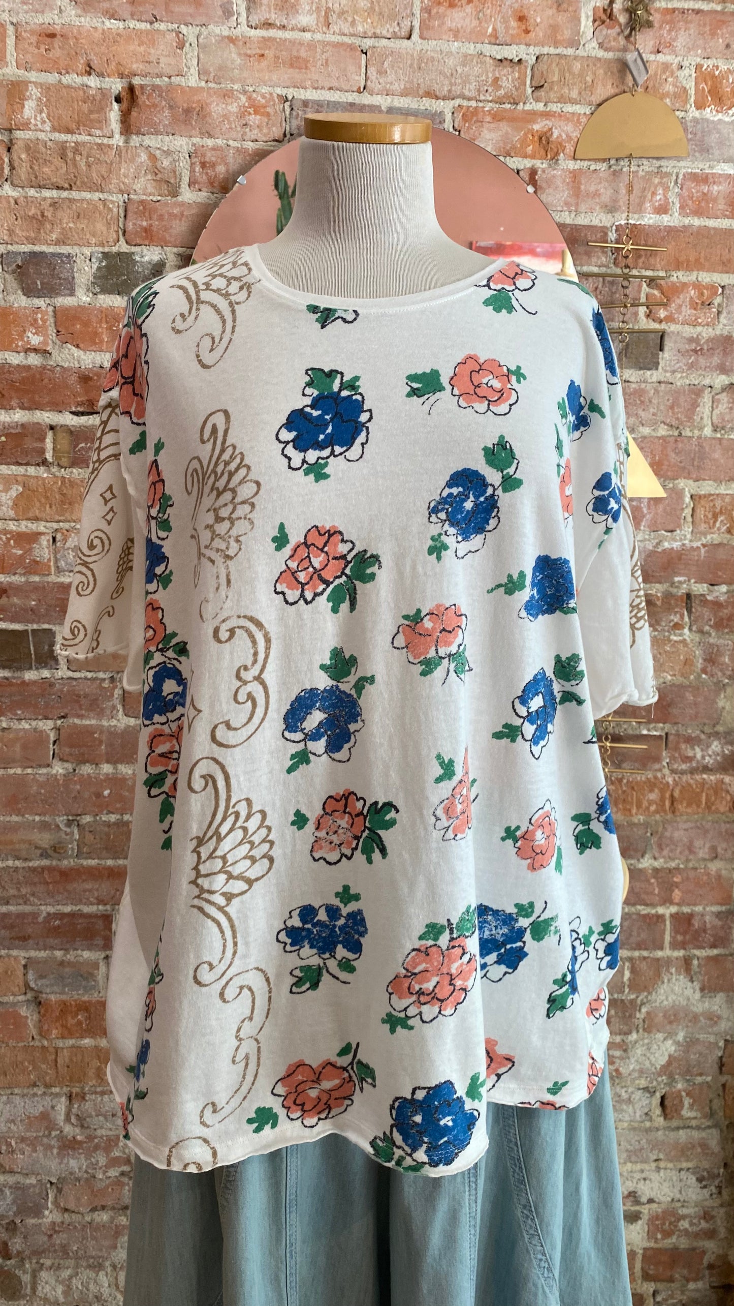 Your new favorite tee from our We We The Free collection, this soft short-sleeve is featured in an oversized fit with a subtle scoop neckline and printed detail throughout.