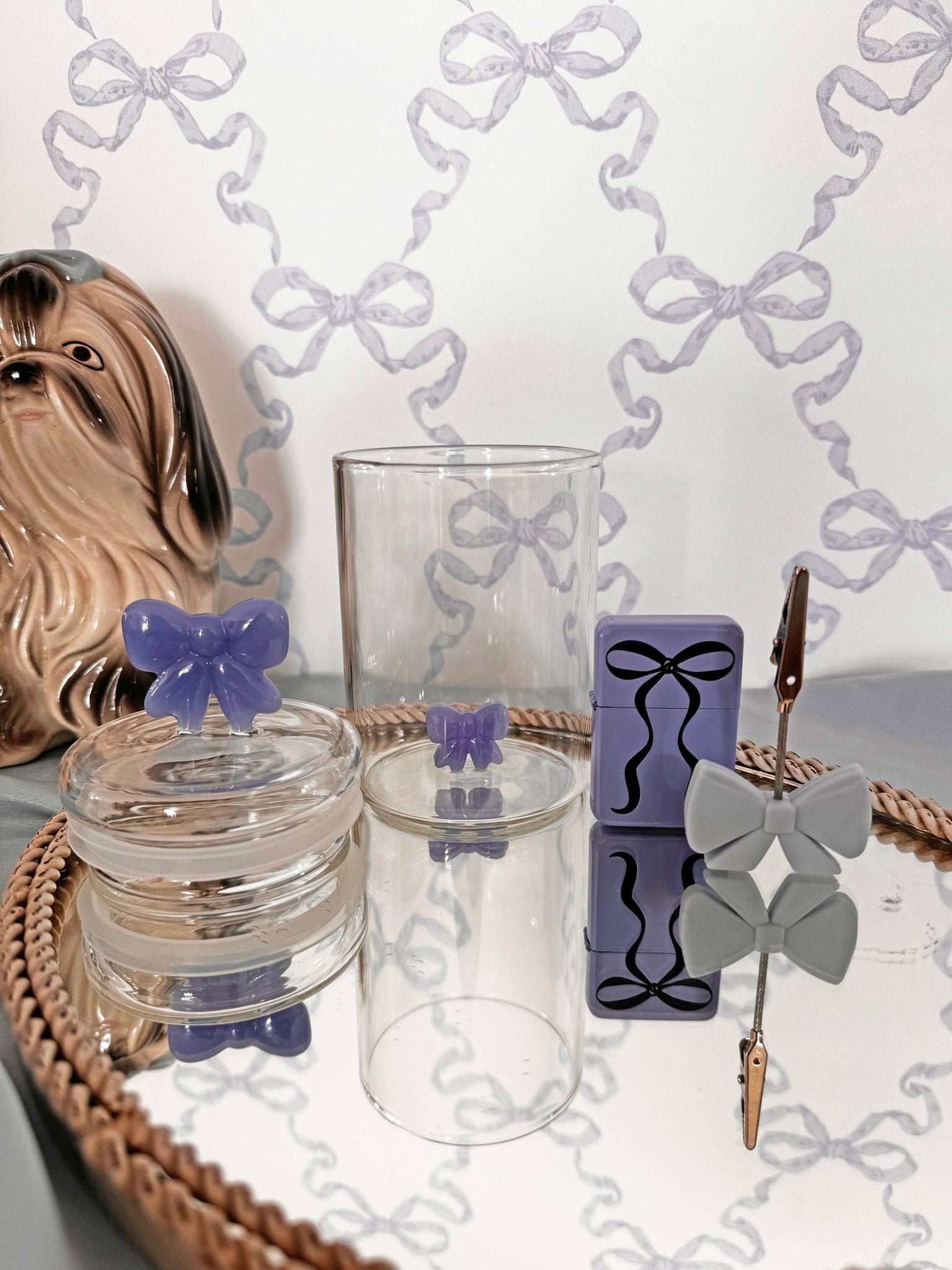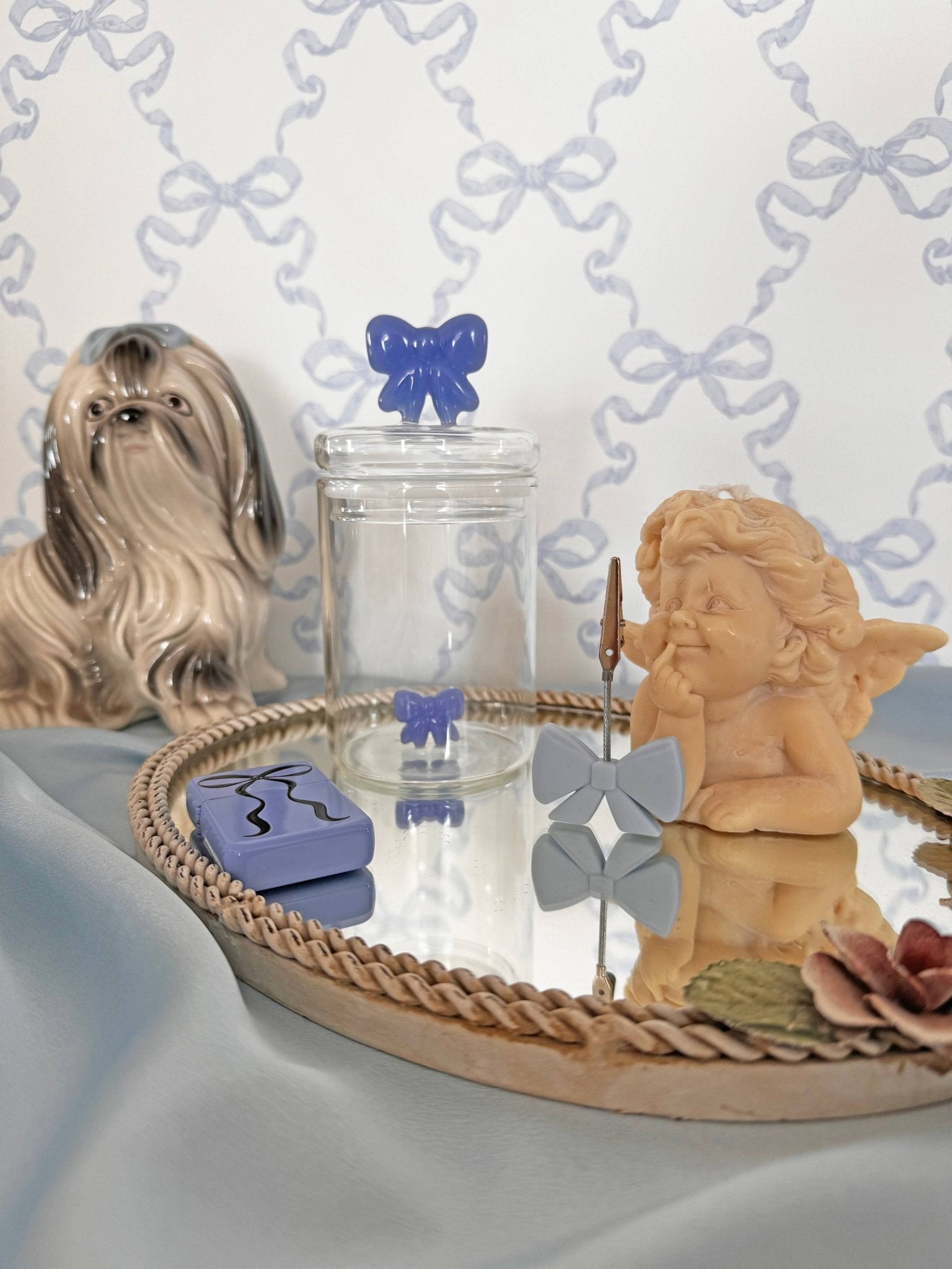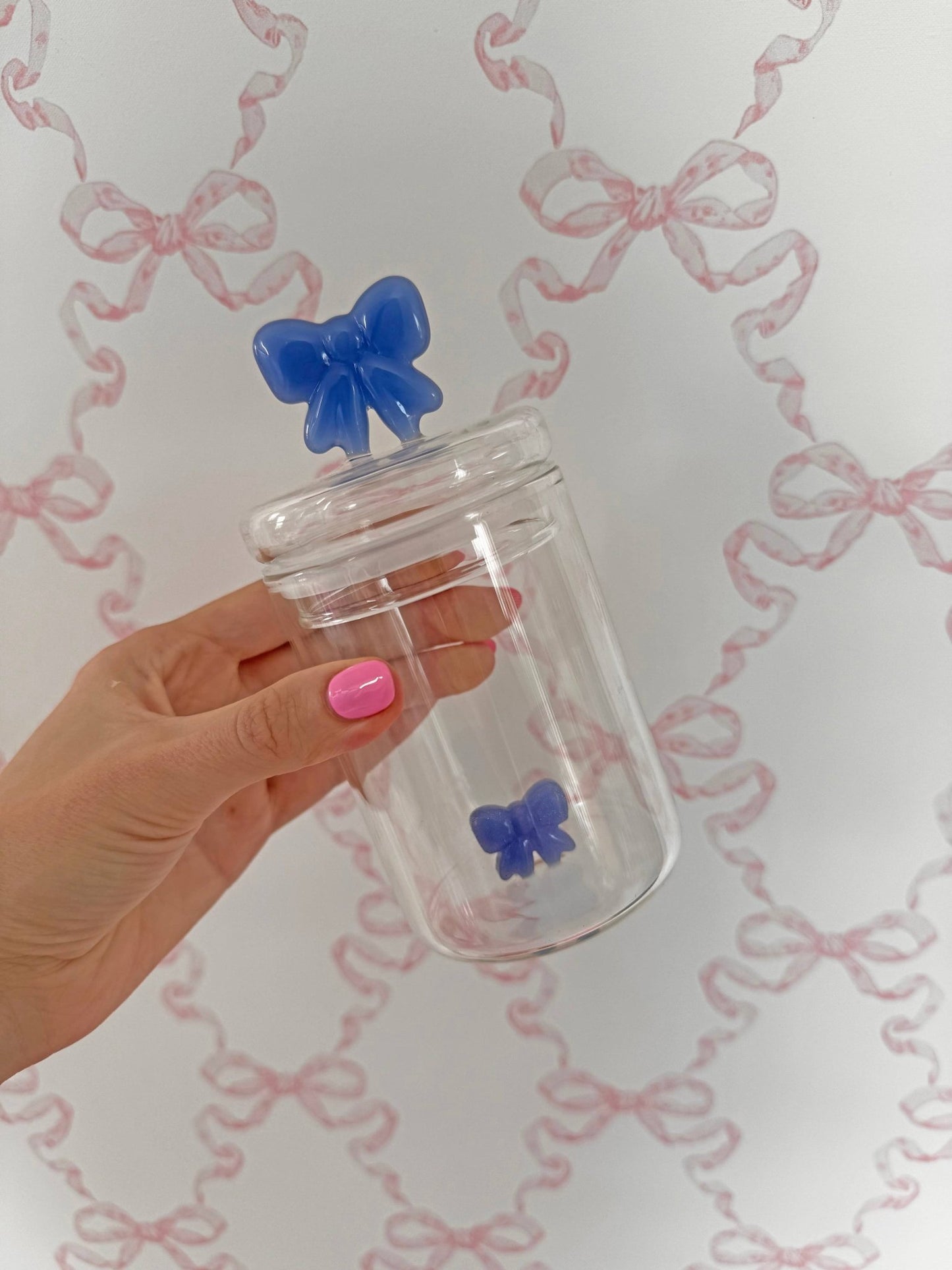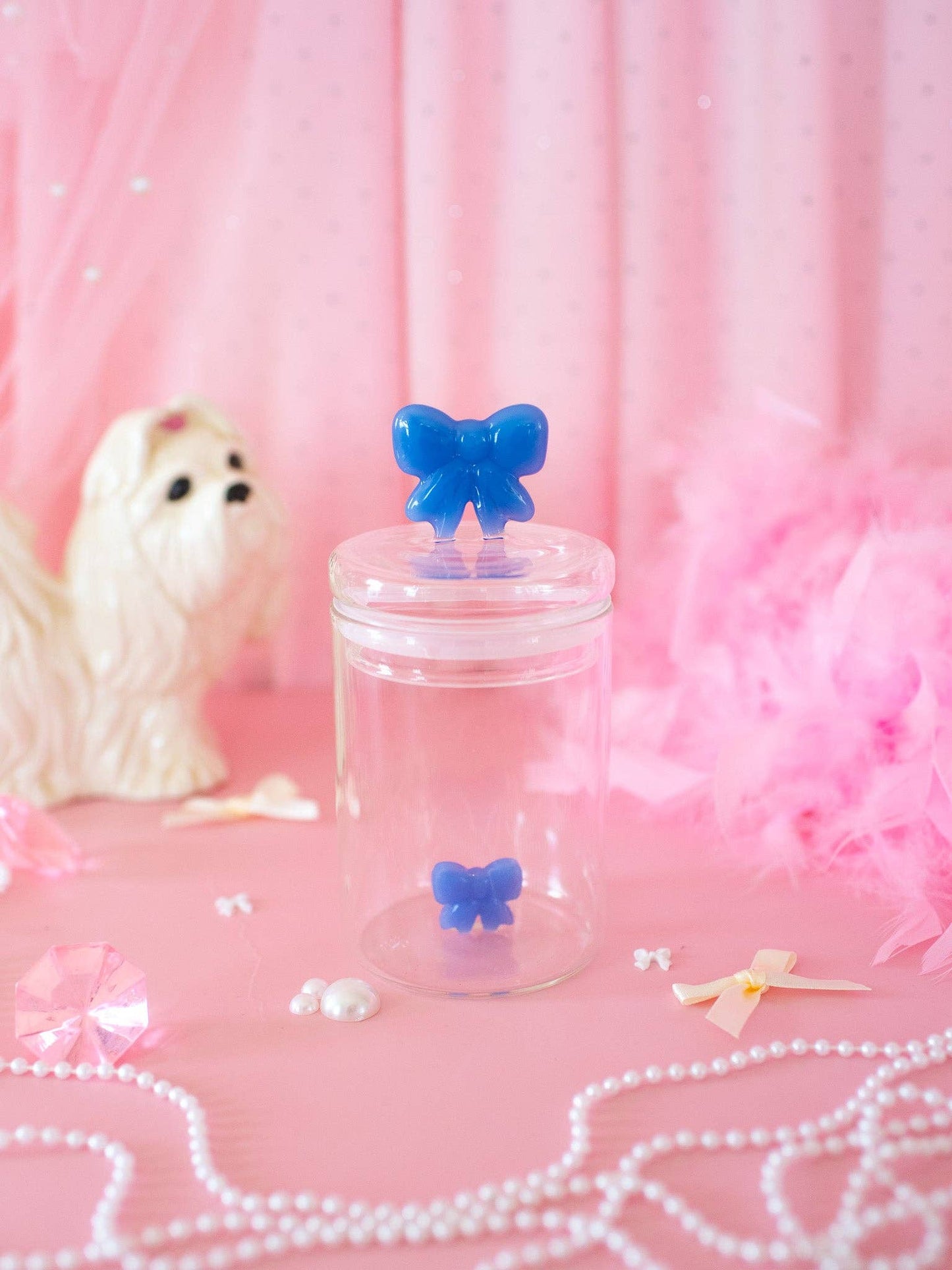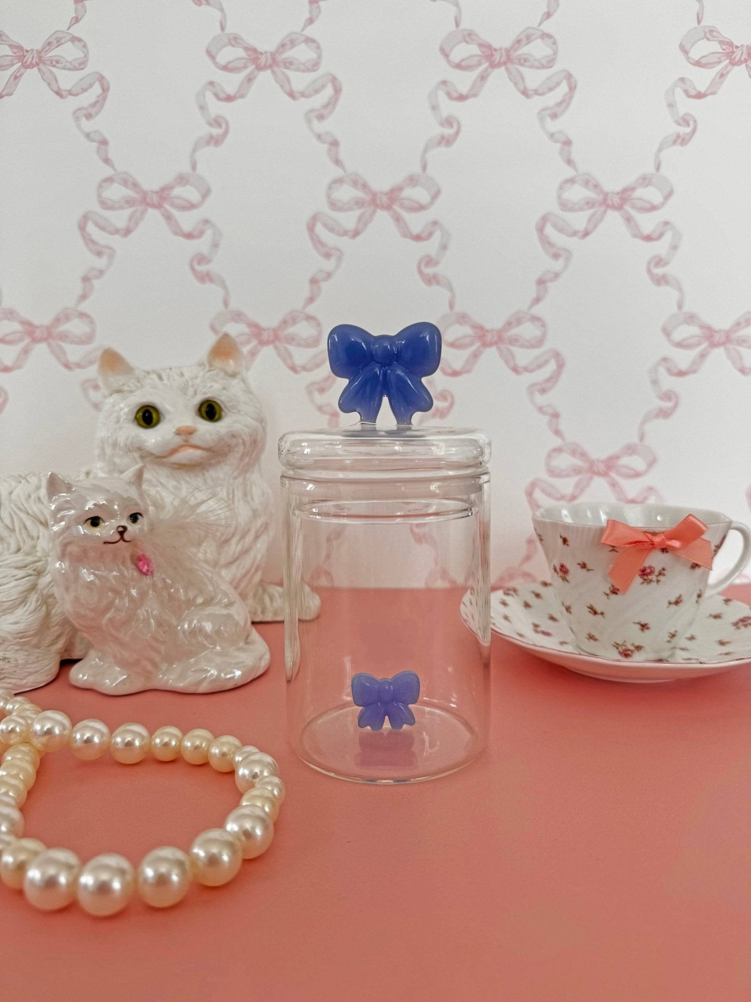 Looking for the perfect place to store your essentials? This charming jar features a delightful design with clear glass and sweet blue bows on the inside and lid. The tight-sealing lid ensures your items stay fresh and stylish. Plus, it adds a touch of cuteness to any room—kitchen, bathroom, bedroom, and more!