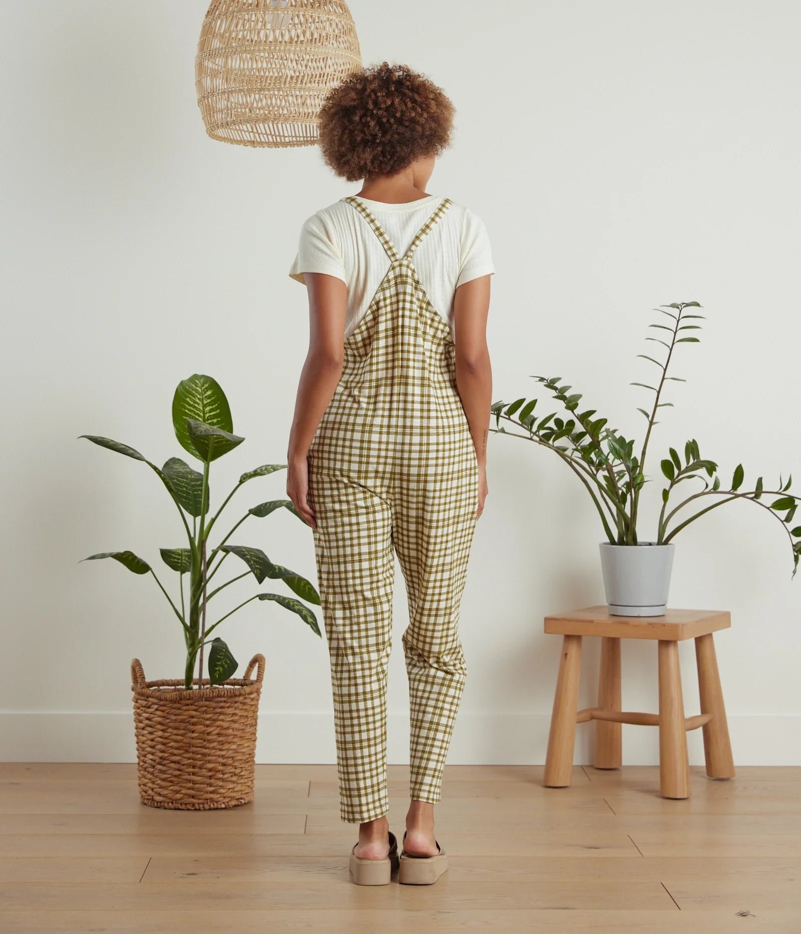 Cadence Overall in Olive Plaid