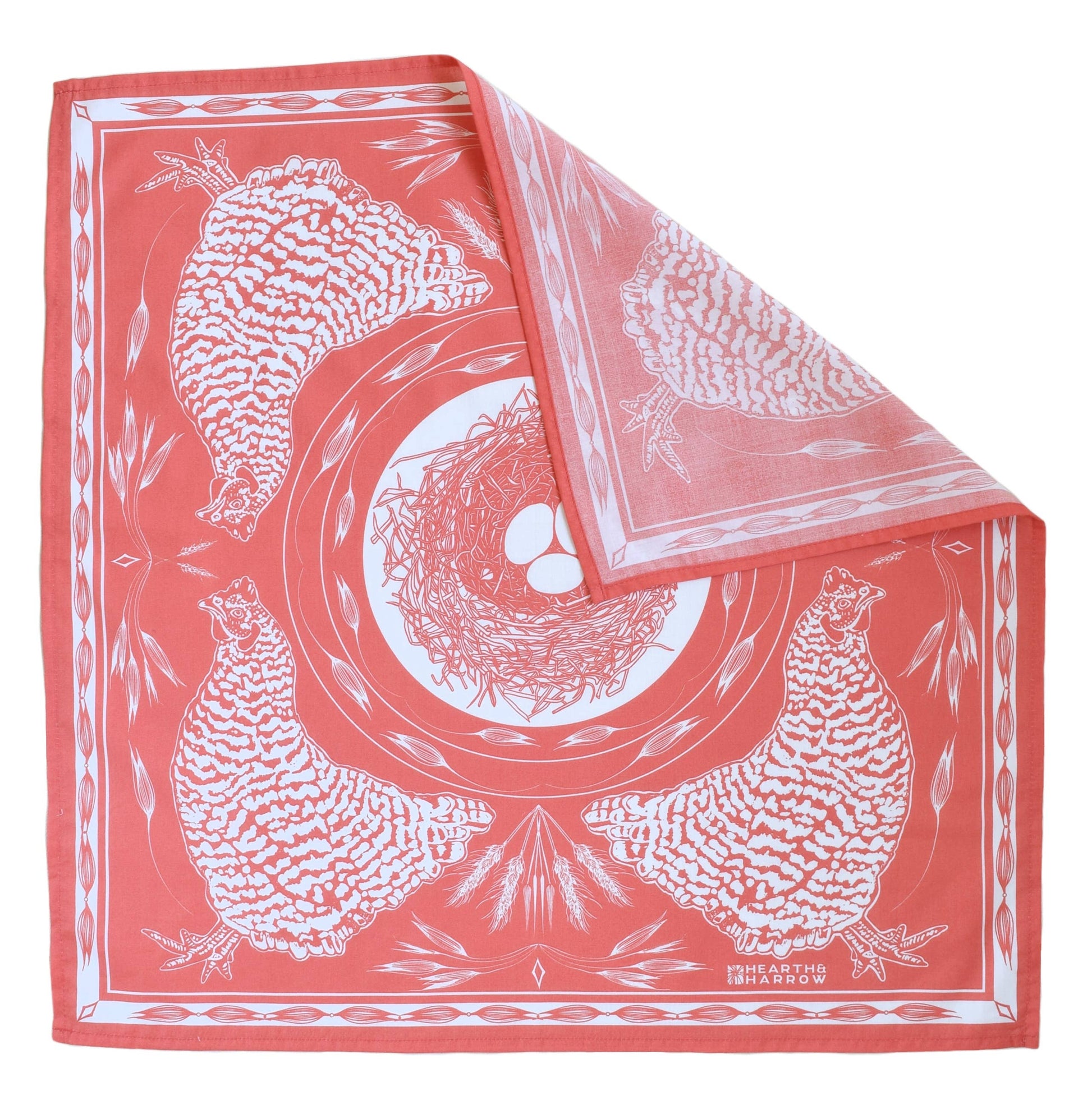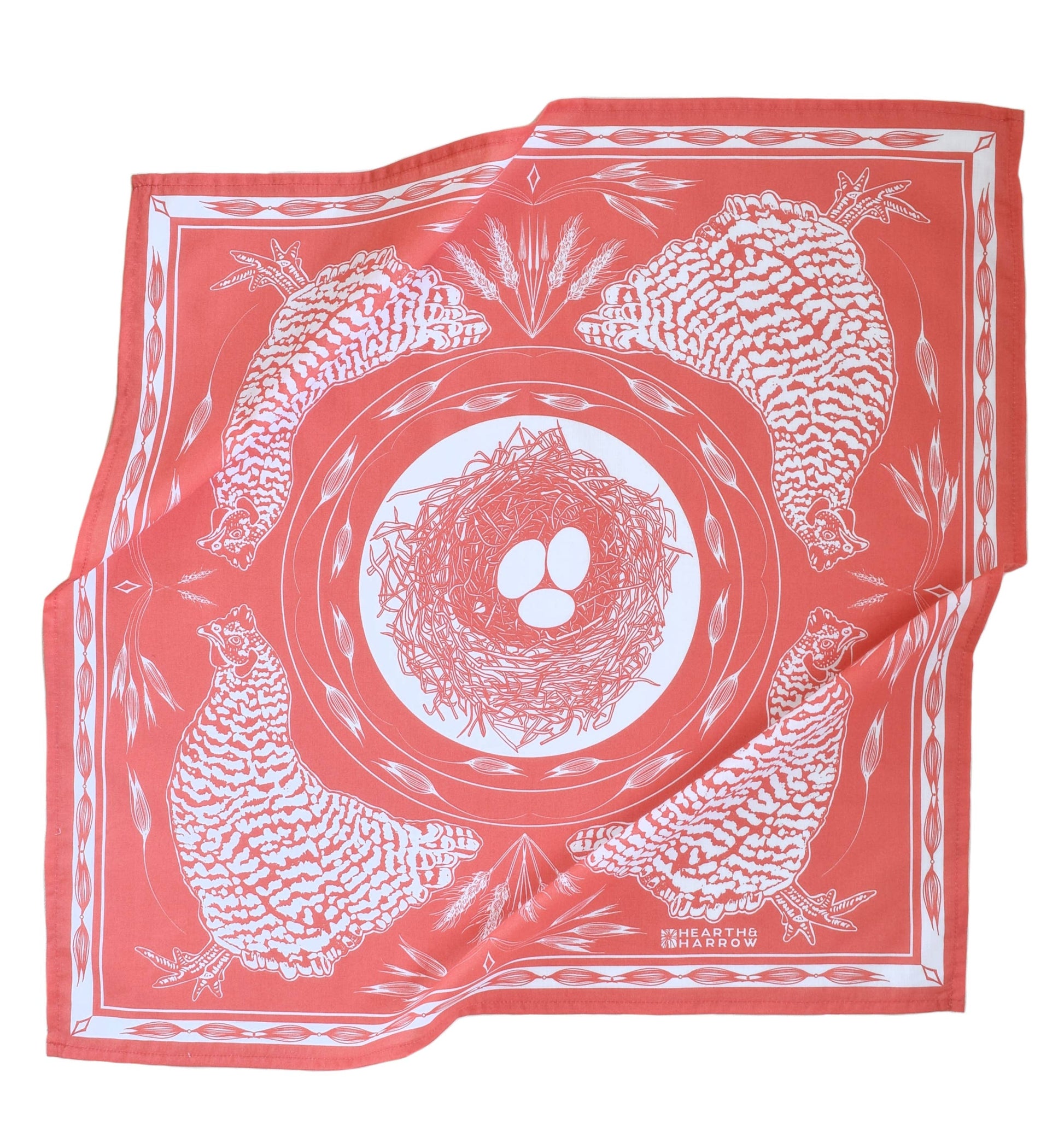 Our Chicken Bandana in red adds a sophisticated touch of joy and functionality to any of your adventures. We've added wheat and cornfield themes and geometric designs to our popular Chicken design to bring you a wearable and functional accessory that gets softer and softer with every wash!