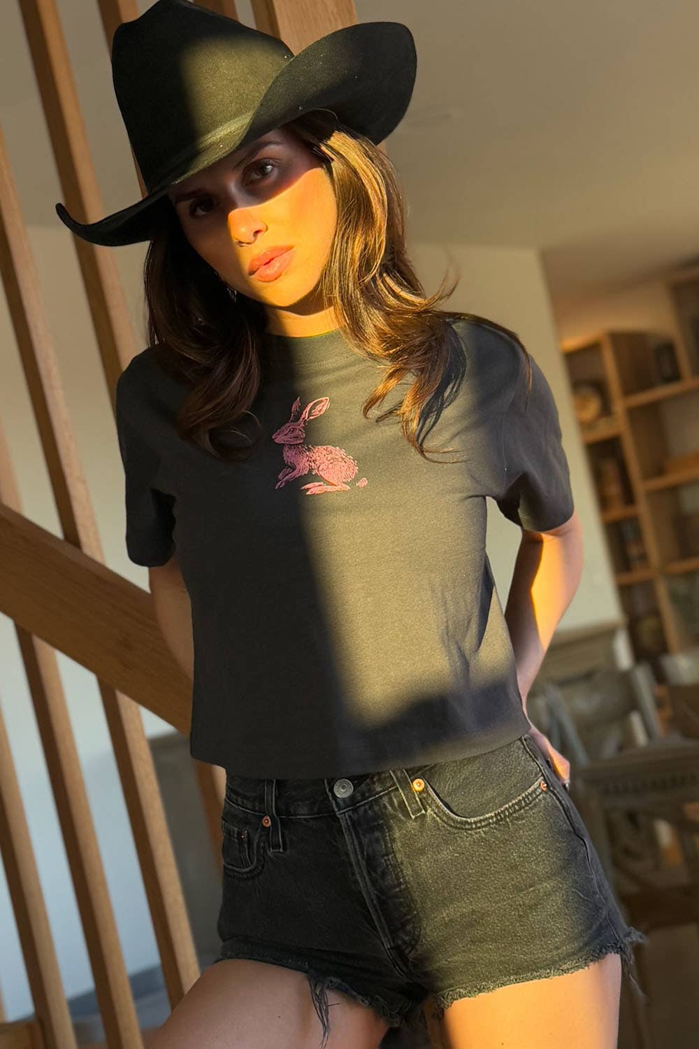 Jack Rabbit Vintage-Wash Cropped Graphic Tee