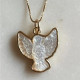 925 sterling silver gold vermeil plated chain featuring carved mother of pearl small dove charm Measures 18” long