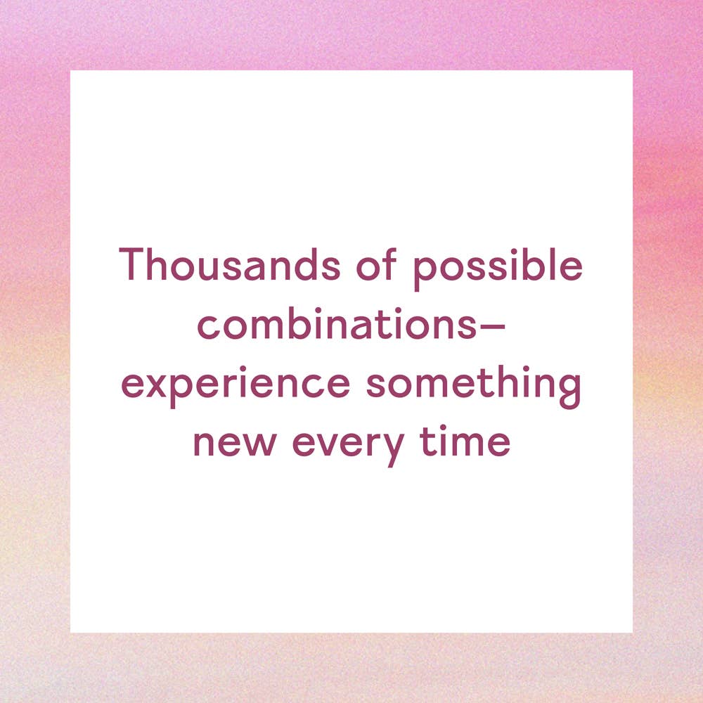 The six wooden dice represent different factors of a meditation session: Time, Type, Affirmation, Location, Sense, and Challenge. Simply roll one or more dice to discover different types of meditations, affirmations, and fun ideas to elevate your practice, such as suggestions for unexpected locations or new ways to engage your senses during a session.