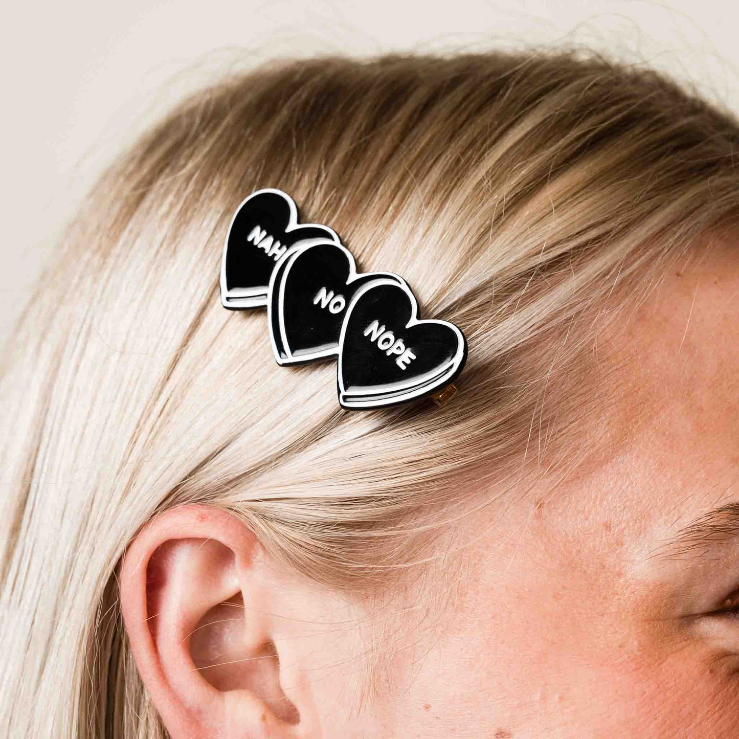 Nah No Nope Hearts Cellulose Acetate Metal Hair Clip