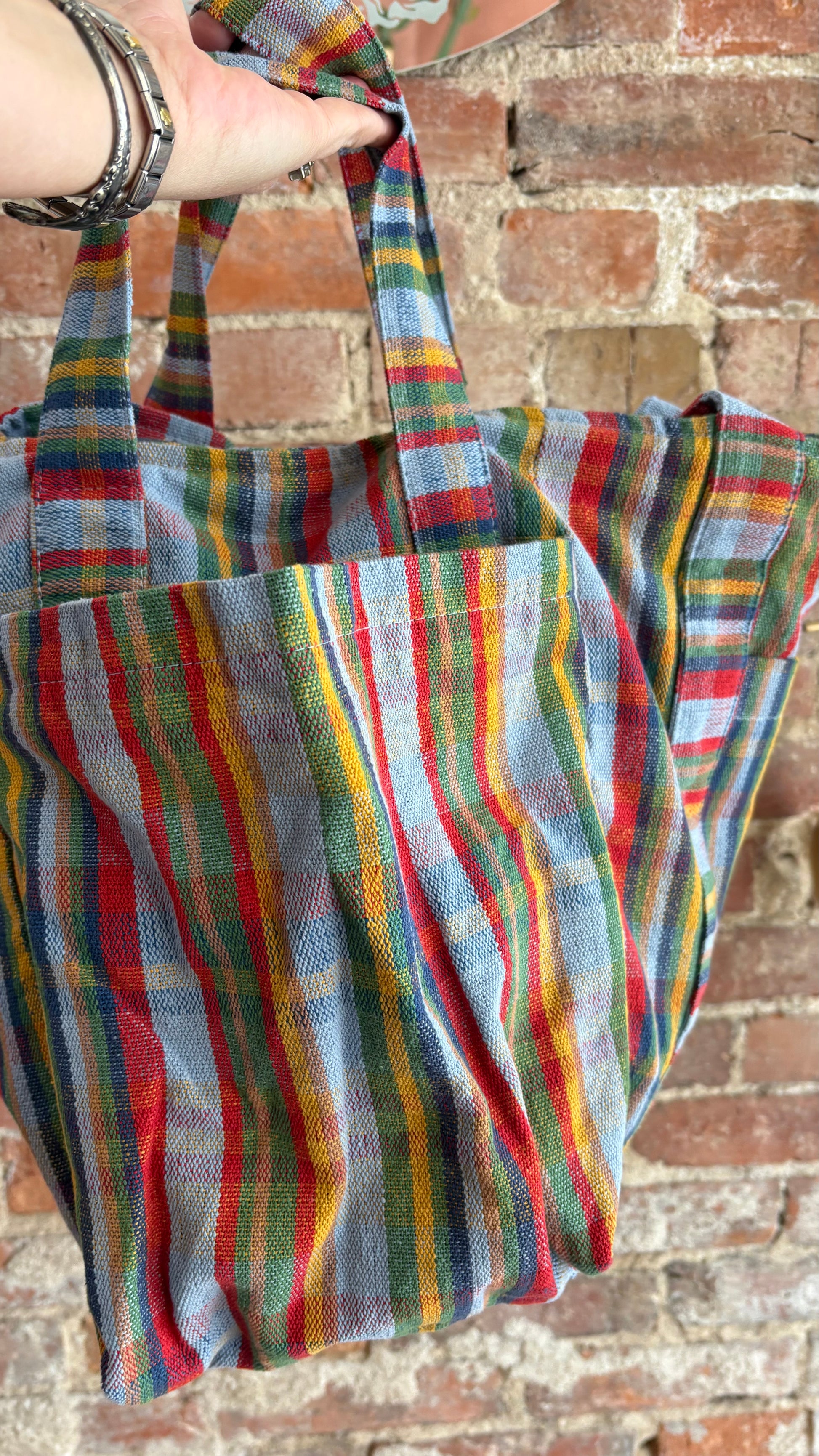 Level up your tote collection with this super cool bag featured in an oversized style and staple square silhouette with defined pockets and colorful detailing throughout for the most effortless blend of fun and functional.