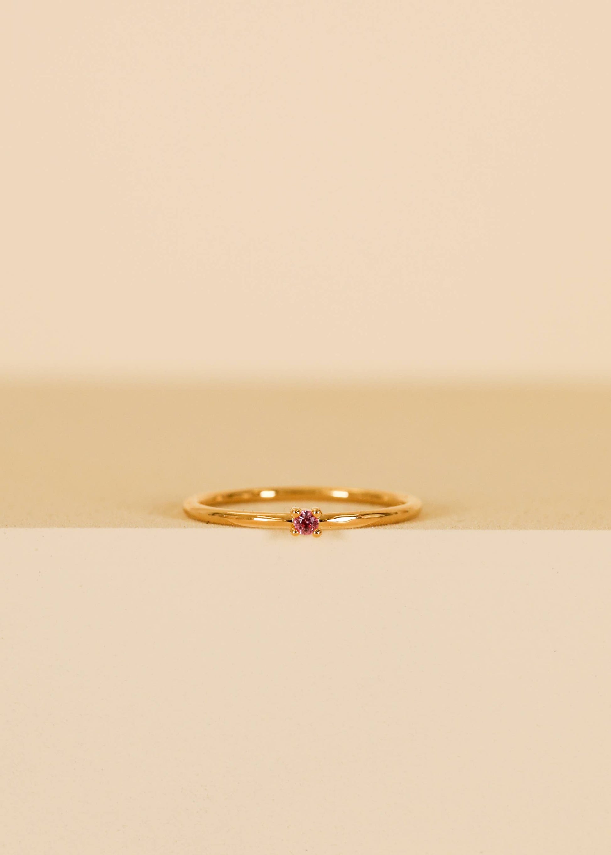 Perfect for making a subtle yet stylish statement. This elegant pinky ring features a dainty, pink cz centerpiece with a sleek band that comfortably hugs the pinky finger, adding a touch of style to any ensemble.