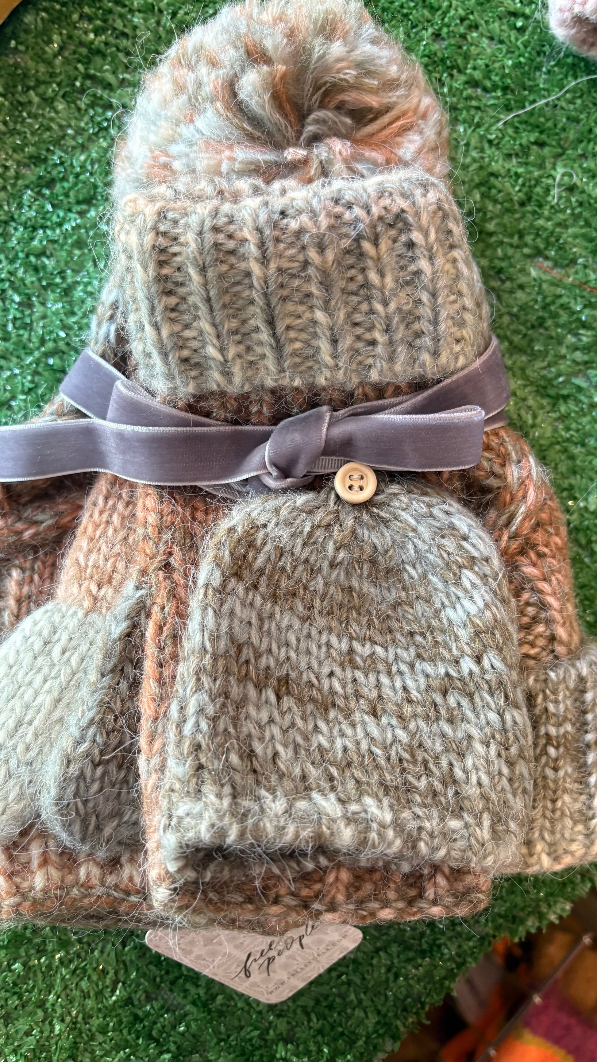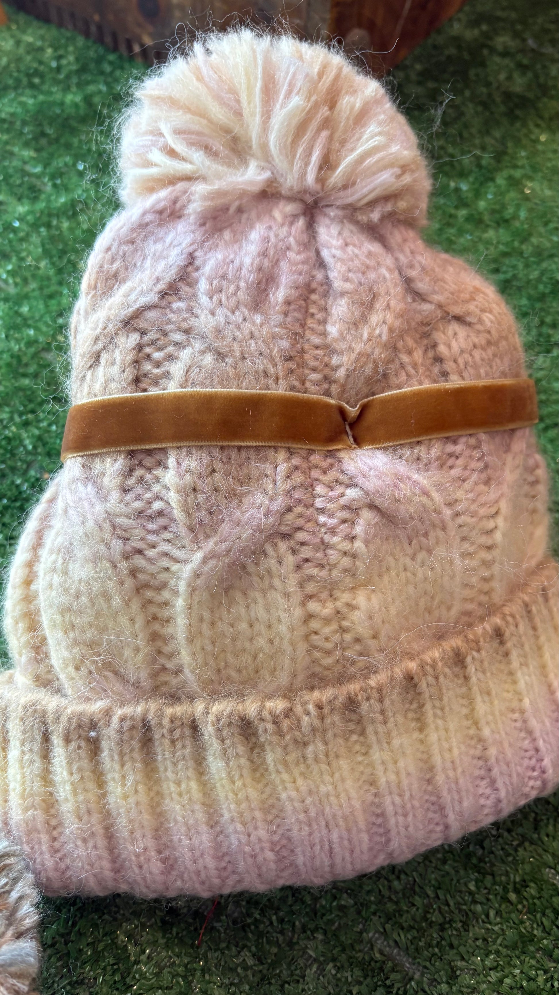 - Pom pom-adorned beanie