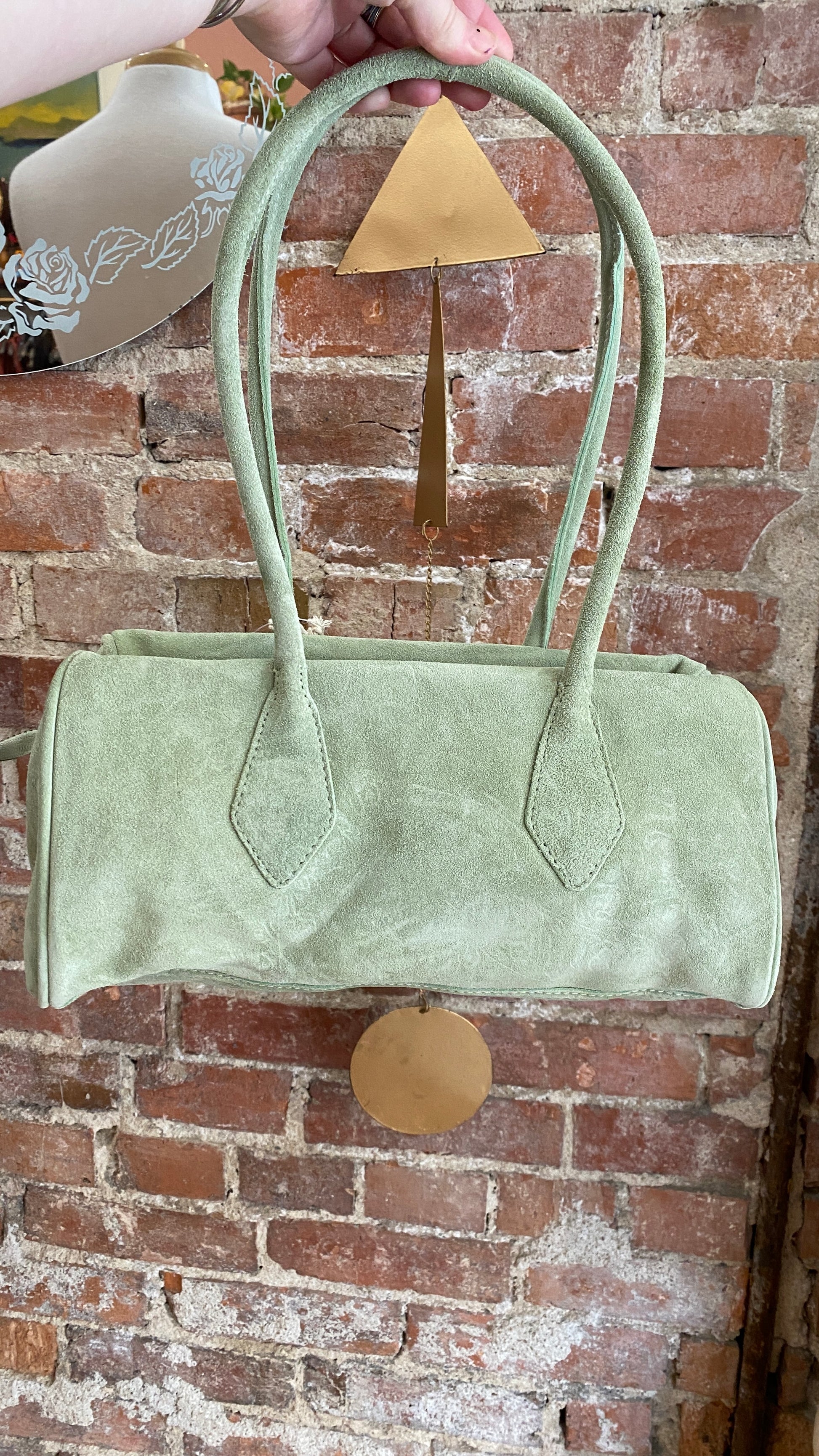 This totally tubular shoulder bag features signature FP Collection vintage-inspired touches in an all-over suede fabrication with an interior zipped pocket for special storage.