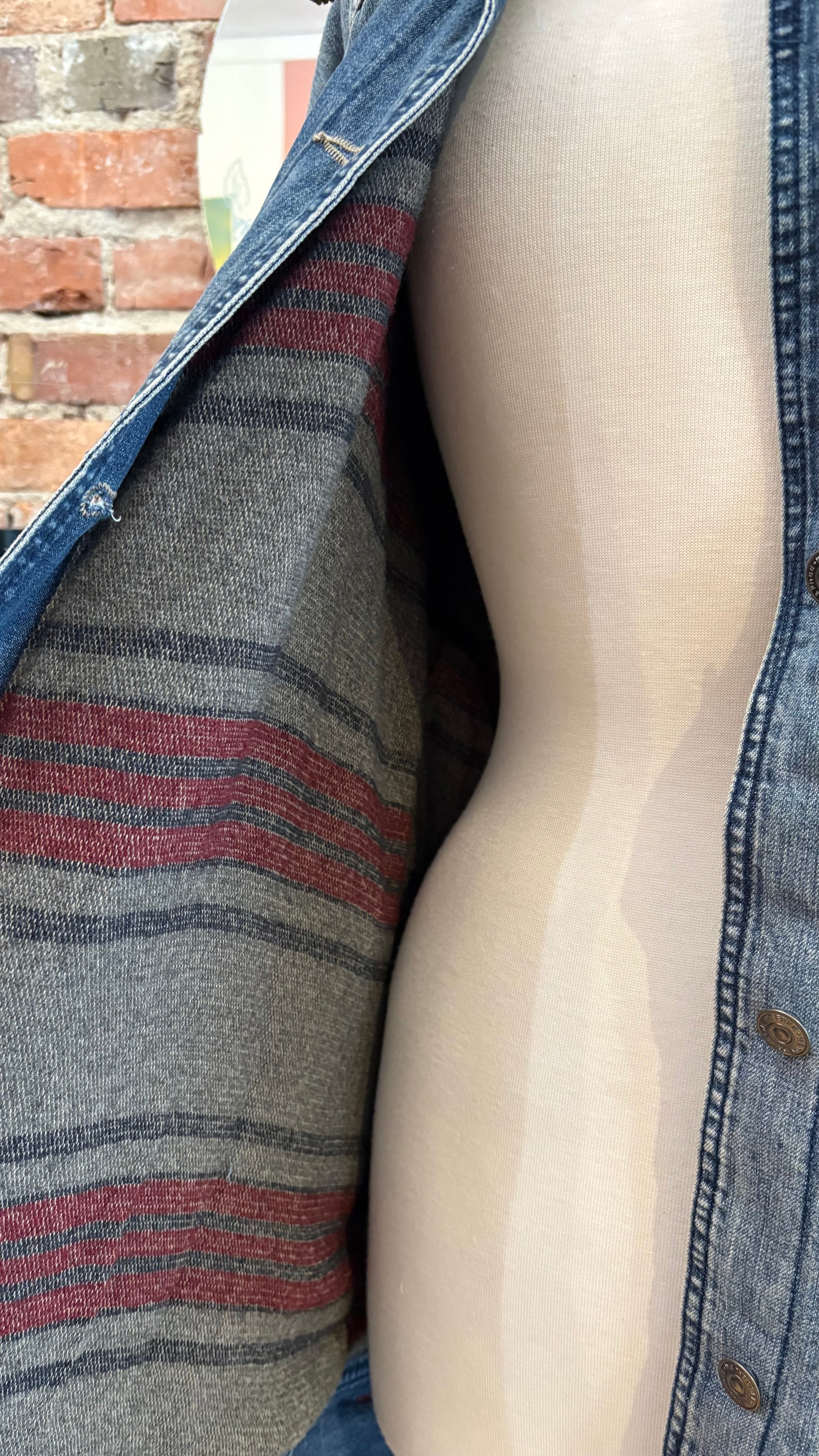 Heritage rules with this classic barn coat from We The Free, featured in a denim fabrication and a slightly longline, oversized silhouette, complete with a sleek cord collar and cozy printed lining.